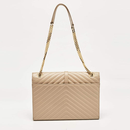 Yves Saint Laurent Tan Leather Crossbody with Gold Chain