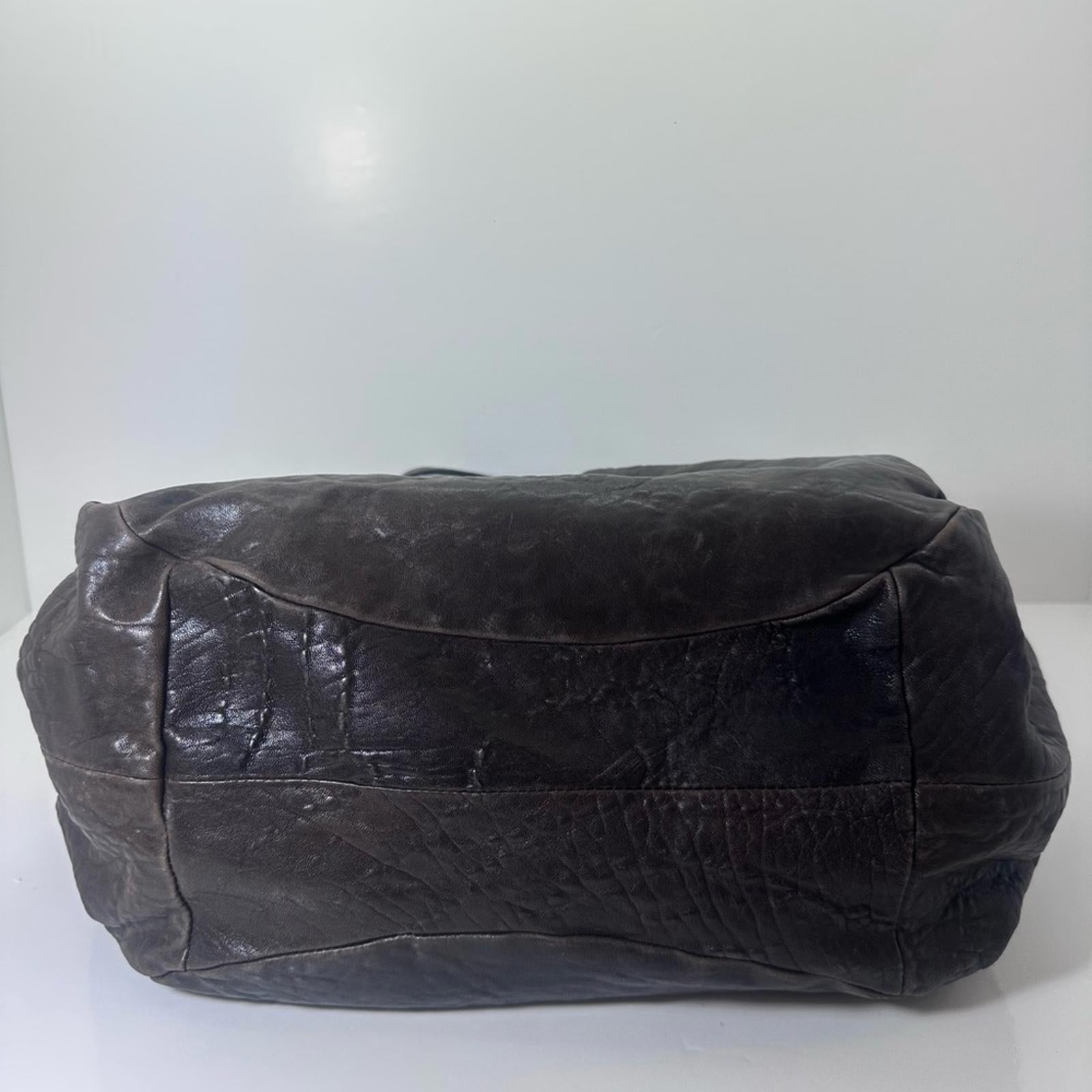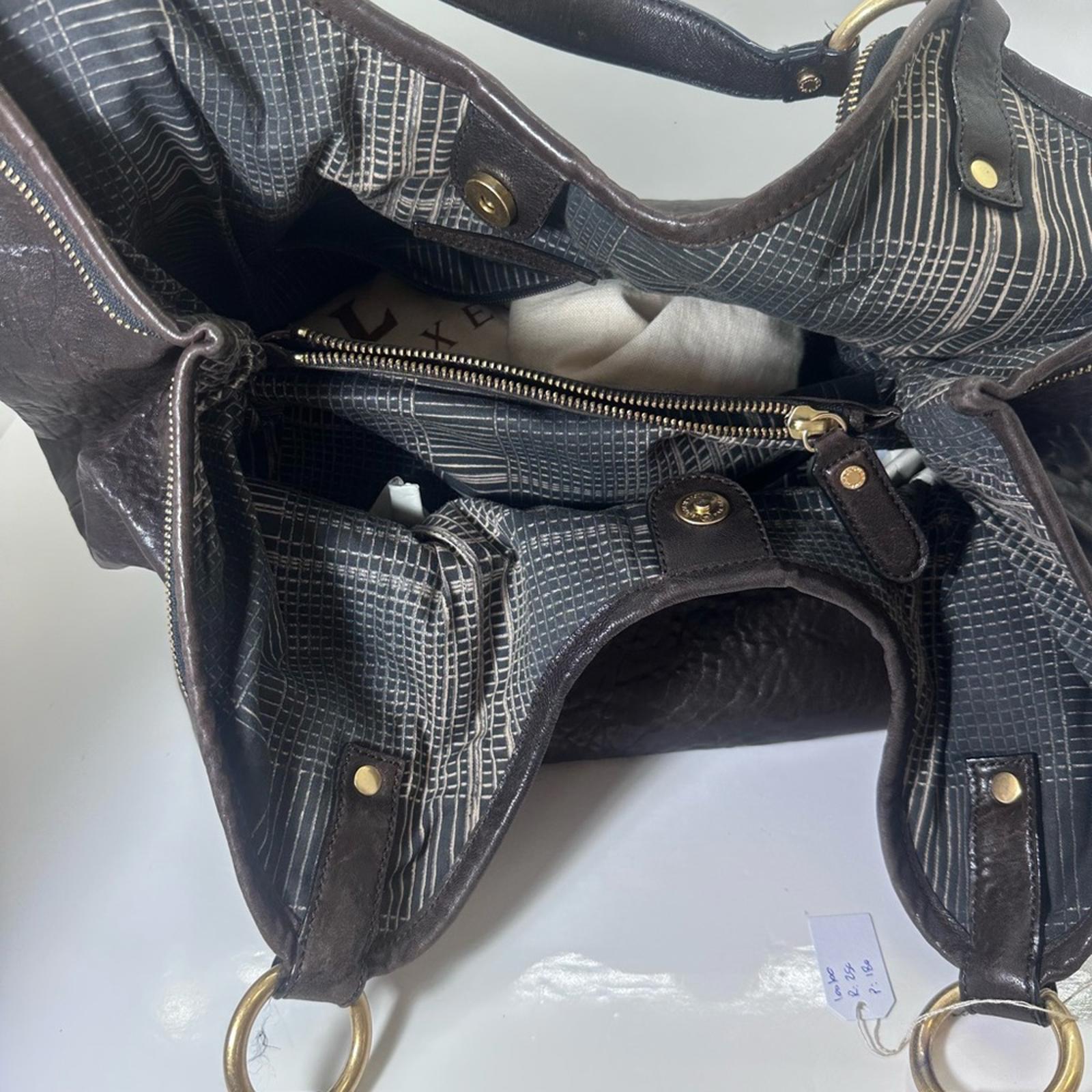 Chic and spacious hobo real leather bag. Features rich dark brown leather. Stylish gold accents enhance the design.